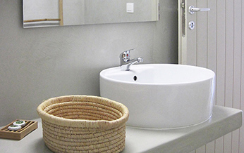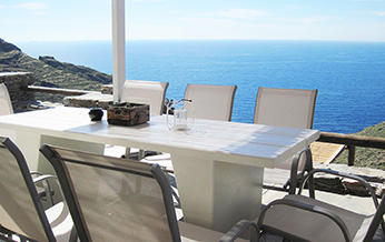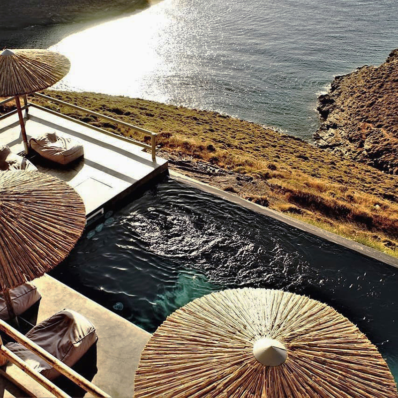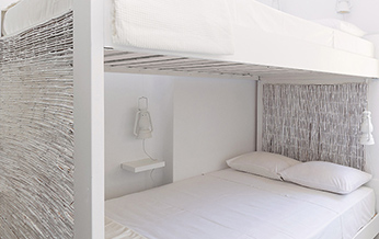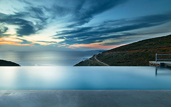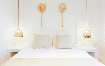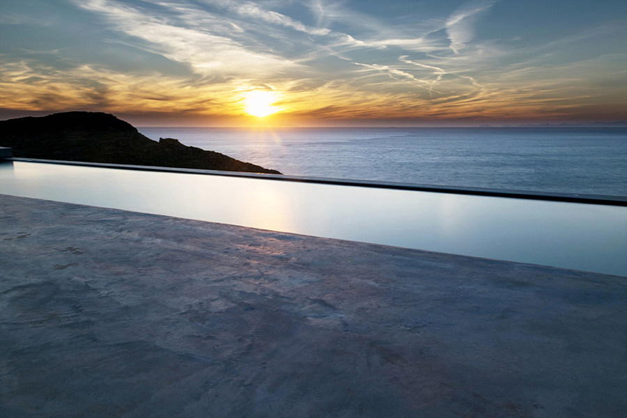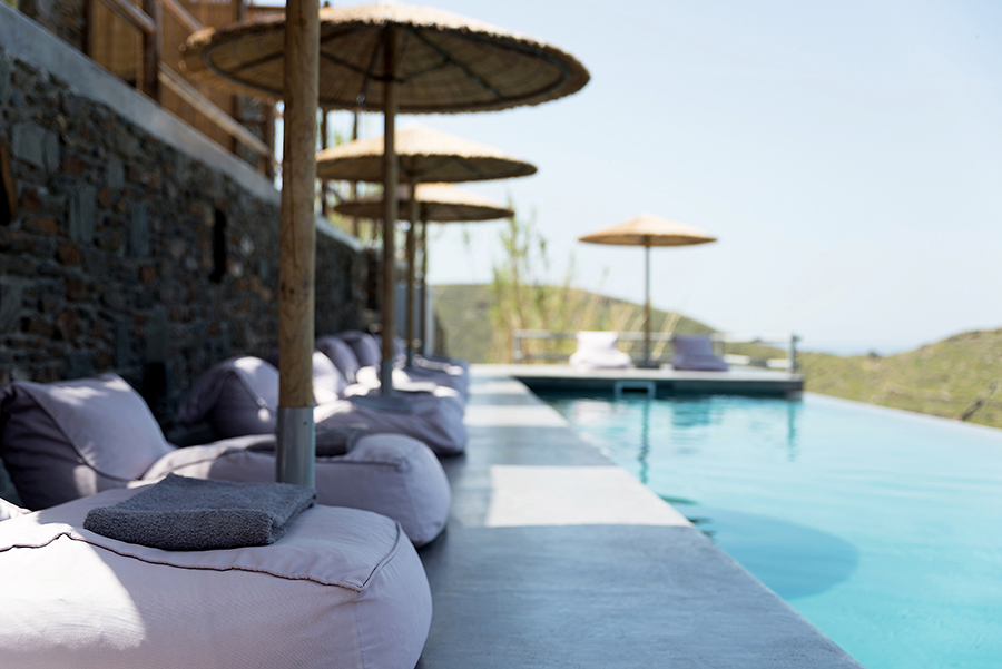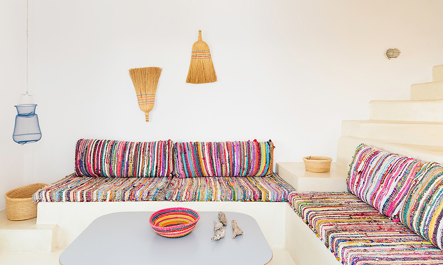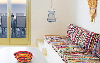 The interior design is inspired by the sophisticated simplicity of the cycladic architecture, like the builtin furniture and the use of traditional materials. The same architectural vocabulary is also used in the exterior spaces.