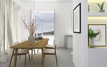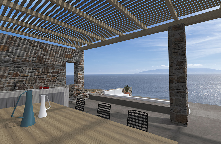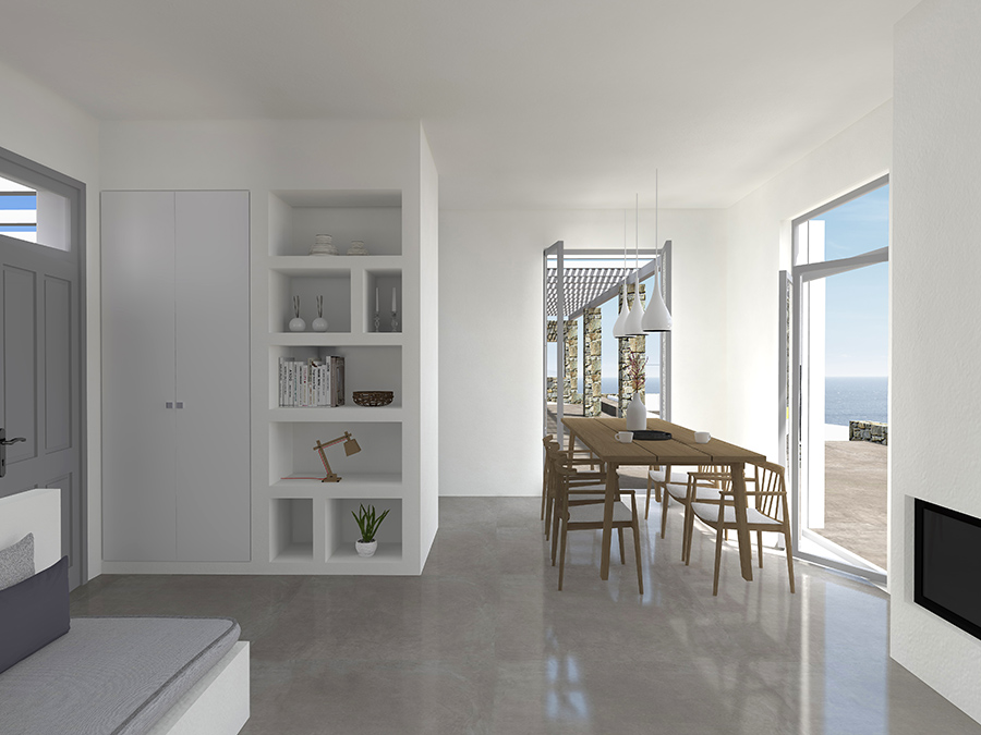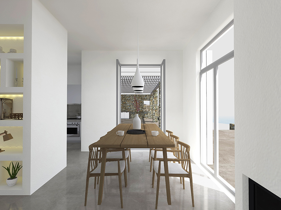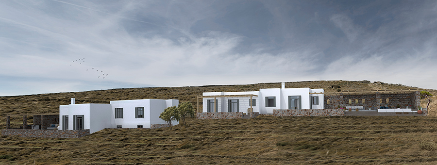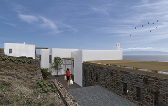 consists of a series of simple geometric volumes accordingly to the Cycladic scale, that accommodate