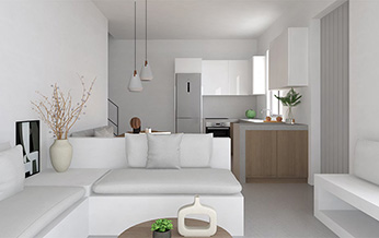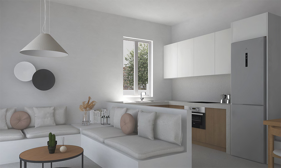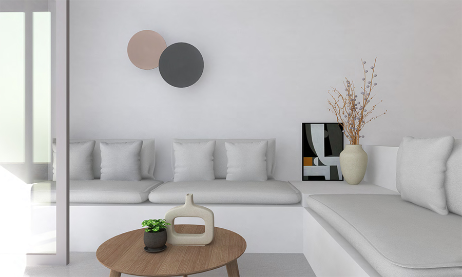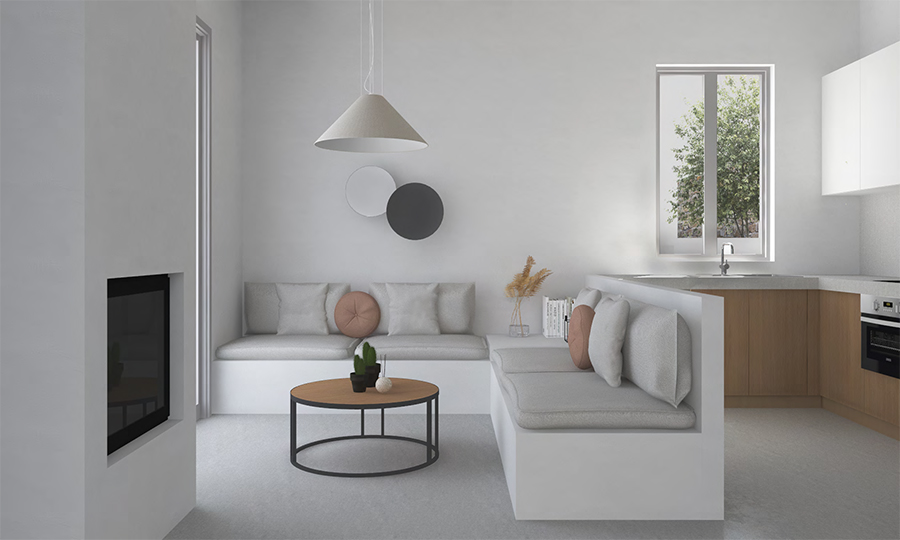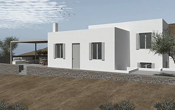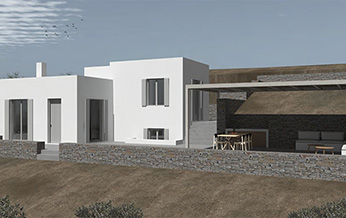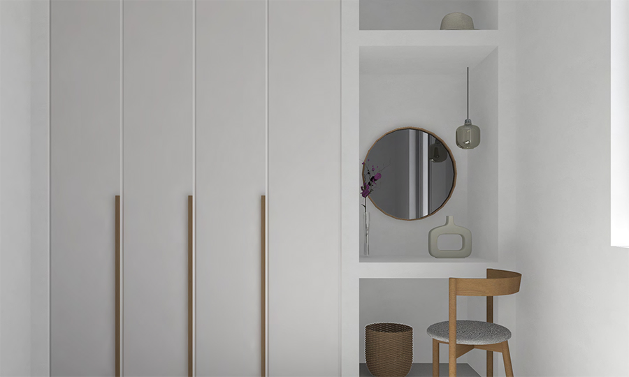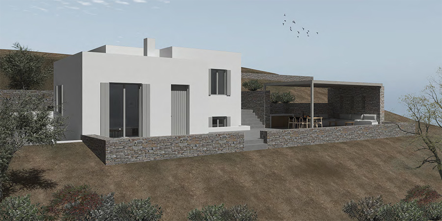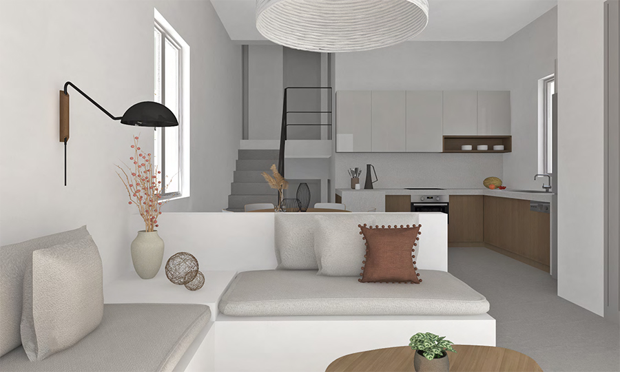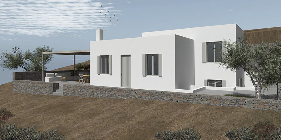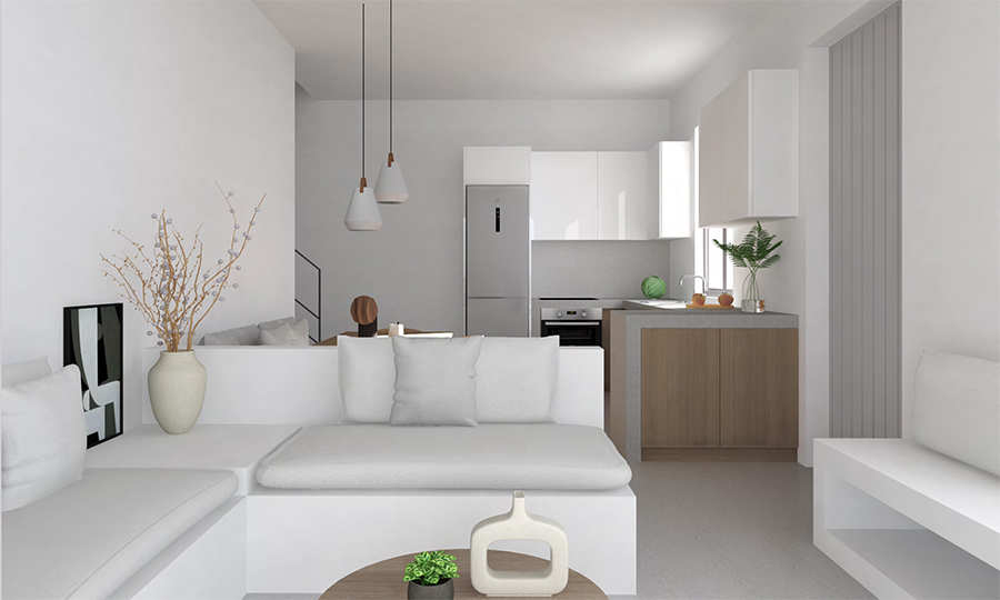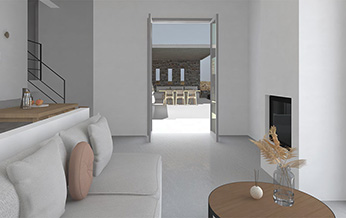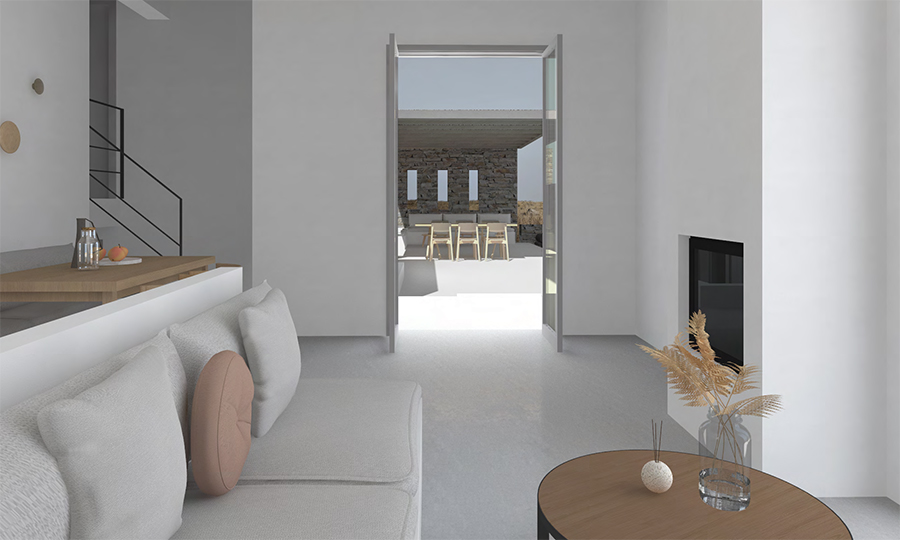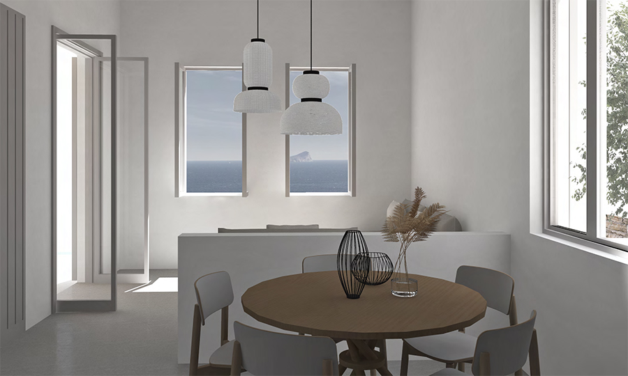 The interior design is inspired by the sophisticated simplicity of the cycladic architecture, like the builtin